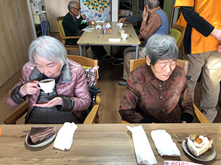 先月の曜日対決で優勝した火曜日ご利用の方々は、市内の洋菓子店へ行き、好きなおやつを選んでいただきました。ケーキを召し上がる際には「次も頑張ろう!」と意気込みが聞かれました。
