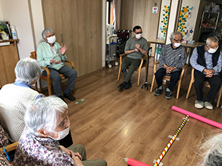 読み聞かせボランティア『じんじん』が来所し、賑やかな午後のレクリエーション活動となりました。3月の誕生日者のお祝いで、くす玉割りやバースデイソングを歌って盛り上がりました。