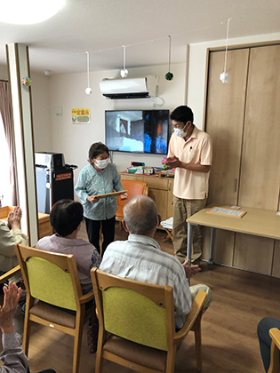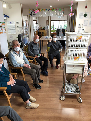 天気の良い日にはお散歩へ行けますが、今週は天気がいまいちな日が多く、室内で楽しめるレクリエーションを行なっています。