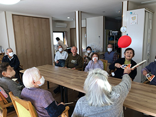 初詣には神明社のお伊勢の森へ参拝に行き、皆様の健康と安全を祈願して参りました。 お正月遊びでは、すごろくや、風船羽子板を行ないました。