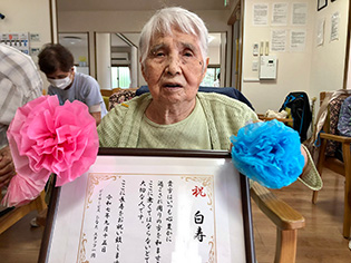 今年の敬老会では99歳【白寿】の方のお祝いをしました。